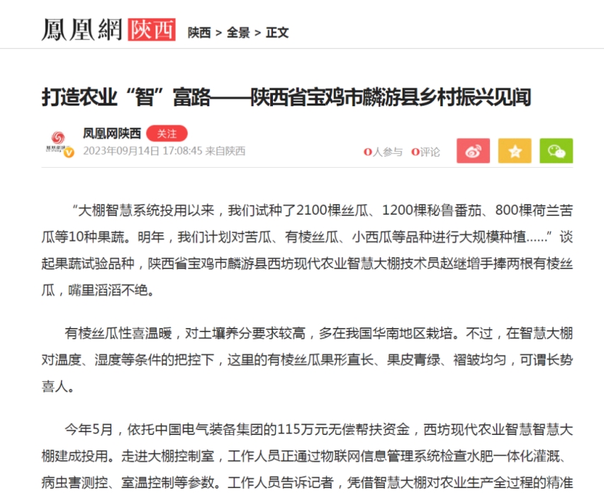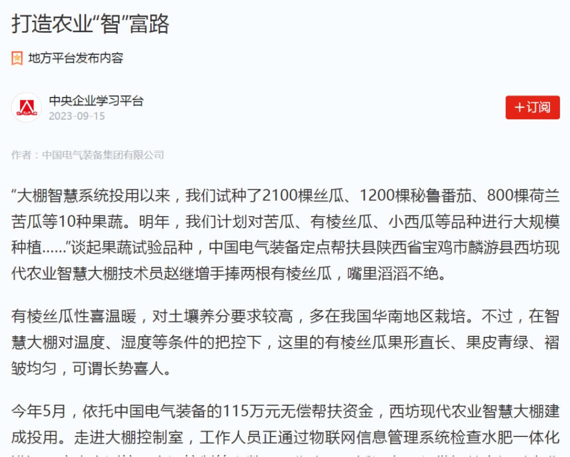 连日来,介绍中国电气装备定点帮扶项目成效的报道《打造农业“智”富路——陕西省宝鸡市麟游县乡村振兴见闻》备受多家主流媒体关注,一起来看看那些被“聚焦”的时刻!